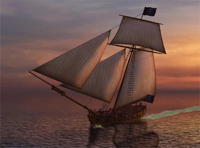 The Bermuda Sloop is one of the fastest ships in the game, reaching a top speed of 16.5 knots while perpendicular to the wind, and only losing 10% of its top speed while at Close Haul. Its fast acceleration and turning speed allow it to outmaneuver more powerful vessels. Armor and hull integrity are major concerns, as with most small scout ships, so avoid taking broadside volleys from larger frigates.