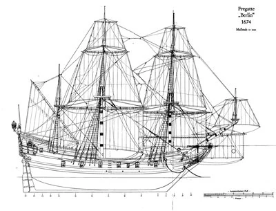 The Berlin was, however, highly successful in her day. With her crew of between 70 - 100 men, the Berlin, commanded by the Dutch Captain C. Reers, performed remarkable service between 1675 and 1680: an attack on the Swedish fortress of Karlsburg; the pursuit and overpowering of the French corsair frigate La Royale de Dunquerque; the capture of the Swedish ships Leoparden, Diederik, and Maria in the Baltic Sea; the defeat of another Swedish ship, Enhorn; escort duty to protect the transit of the Brandenburg Army from Peenemunde to the Rugen islands; and then the momentous capture of the 50-gun Spanish vessel Carolus 2nd. For a 16-gun ship to capture a 50-gun ship was unheard of at that time, and is an amazing feat in any era. The Berlin proved the worth of her design and the merits of her crew again and again.